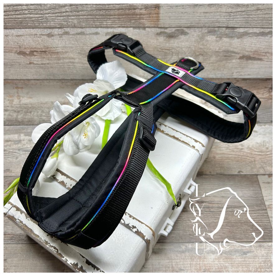 - Optional kann ein verstärkter / geteilter Bruststeg (verhindert das verrutschen des Geschirres),