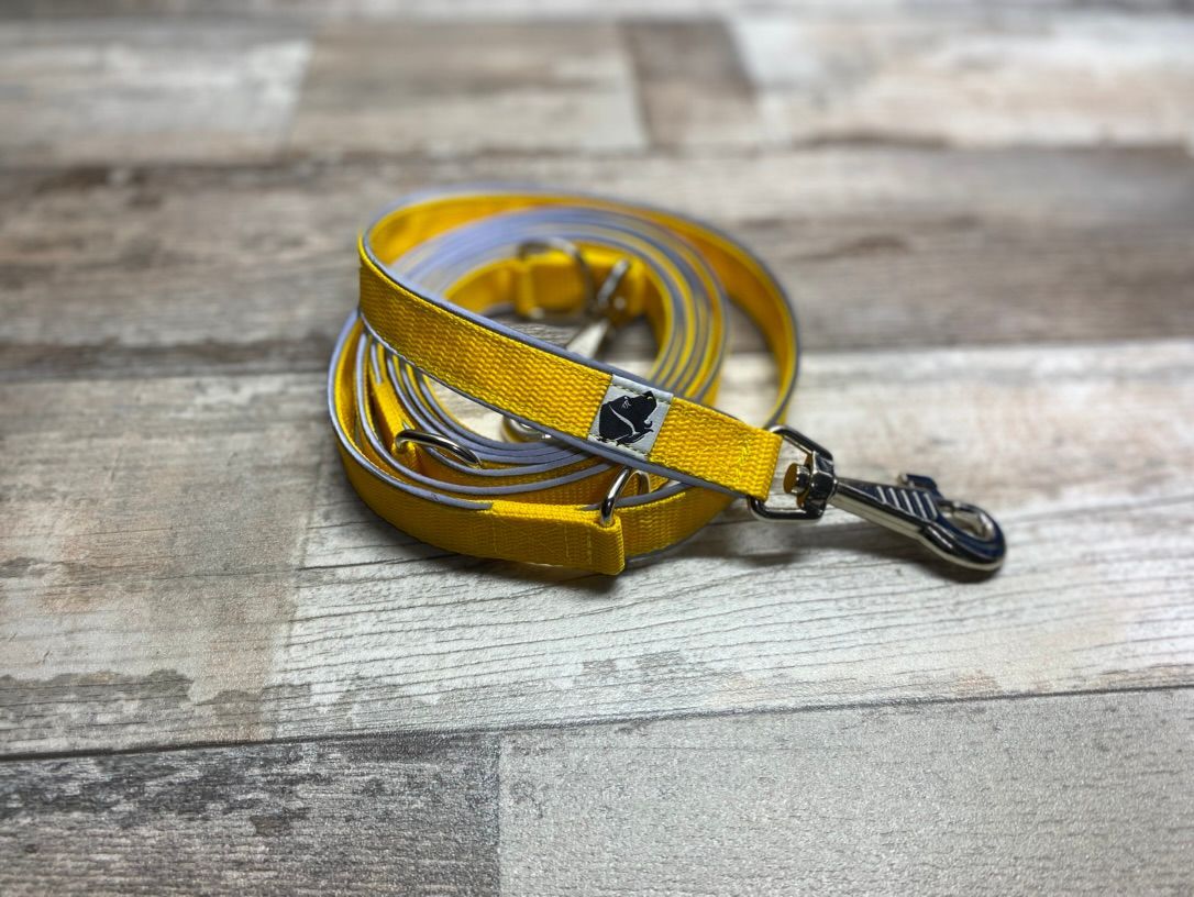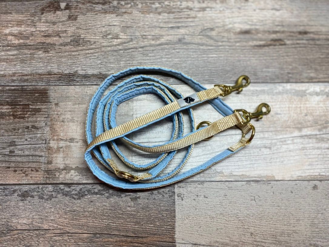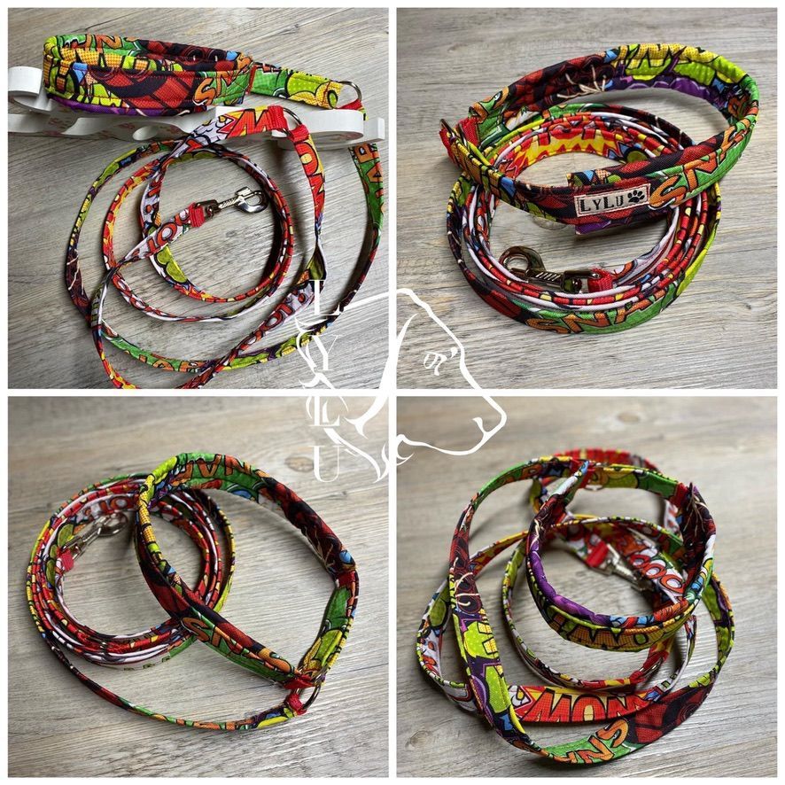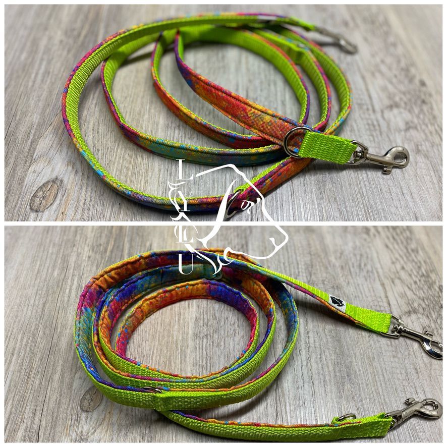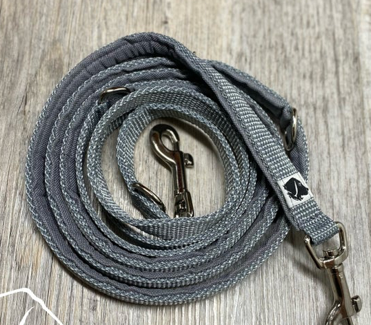 Leashes can be added to the harness or collar in various variations and lengths
